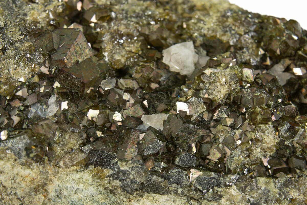 This is a stunning cluster of iridescent andradite garnets mined at Fem-minutter'n in Buskerud, Norway. The iridescence of these garnets is naturally occurring and can be attributed to two different types of lamellar structures. These lamellar structures cause predominantly thin-film interference and most likely diffraction of light.
