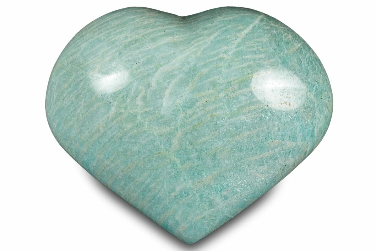 This is a beautiful, 2.8" wide, teal-blue amazonite crystal heart from Madagascar. The polish of the stone really amplifies the color that this mineral displays.