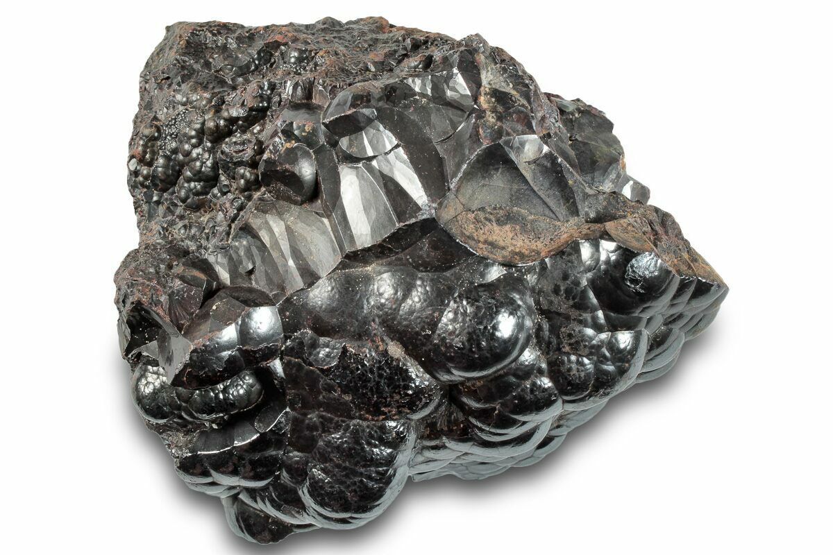 Kidney ore's globular, bubbly shape is a result of layered growth around a nucleus, such as a speck of sand or dust. As more material is deposited, the spheres grow larger and eventually overlap with other nearby spheres. They all eventually fuse together to form the botryoidal cluster.