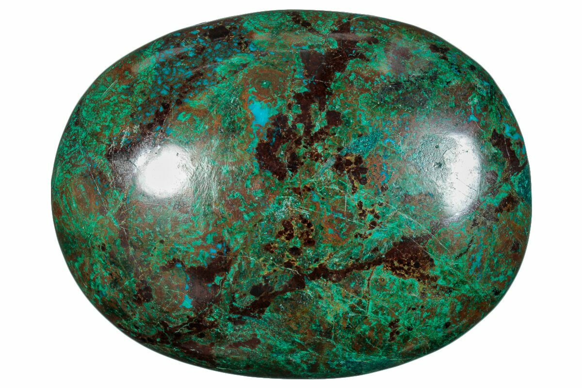 2.85" Polished Chrysocolla and Malachite Palm Stone - Peru
