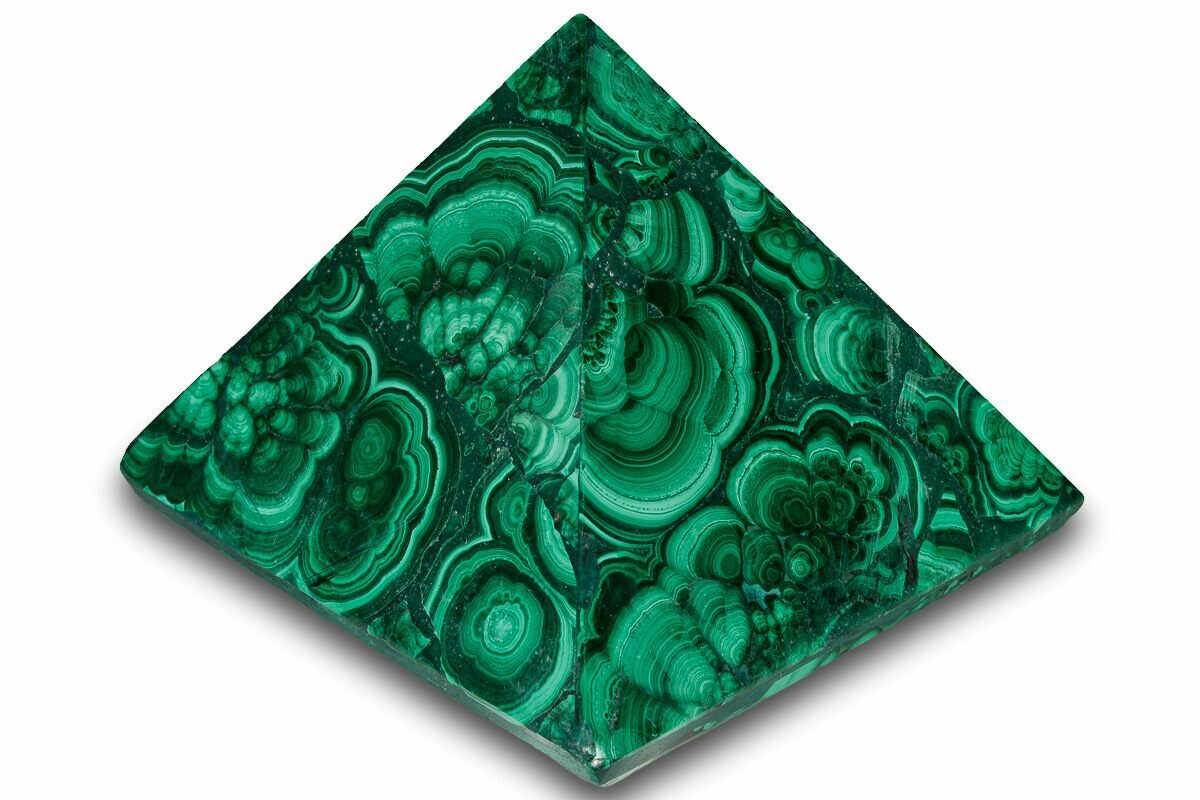 This is a beautiful, brilliant green, polished malachite pyramid. The Malachite was collected from the Katanga Province of the Democratic Republic of the Congo, the source of some of the finest malachite in the world.