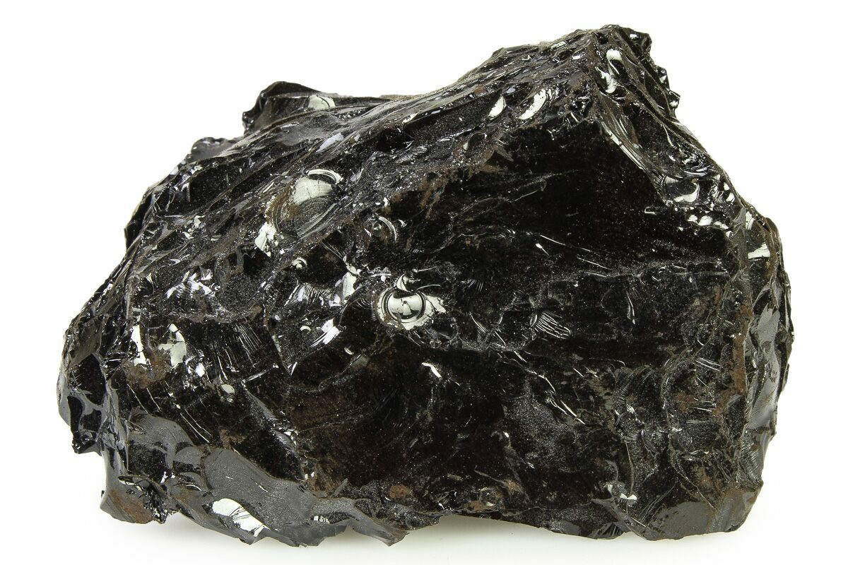This is a 2.9" wide raw gilsonite specimen collected from the famous Uintah Basin deposit in Utah. It exhibits a wonderful luster and conchoidal fracturing.