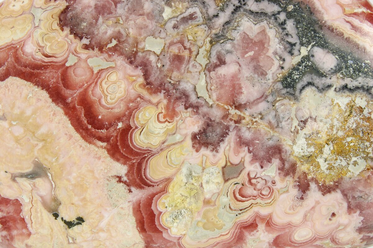 Rhodochrosite from the Capillitas Mine in Catamarca, Argentina, is renowned for its striking pink to deep red coloration, often displayed in intricate, concentric banding. Formed in hydrothermal veins within a Miocene-aged volcanic complex, this rhodochrosite commonly occurs as stalactitic or botryoidal masses that are sliced and polished to reveal vibrant, bullseye-like patterns. Unlike the well-known transparent crystals from Sweet Home Mine in Colorado, Capillitas rhodochrosite is typically opaque and prized for its ornamental and lapidary appeal. Its unique visual character, shaped by rhythmic mineral deposition over millions of years, makes it one of the most distinctive and collectible varieties of rhodochrosite in the world.