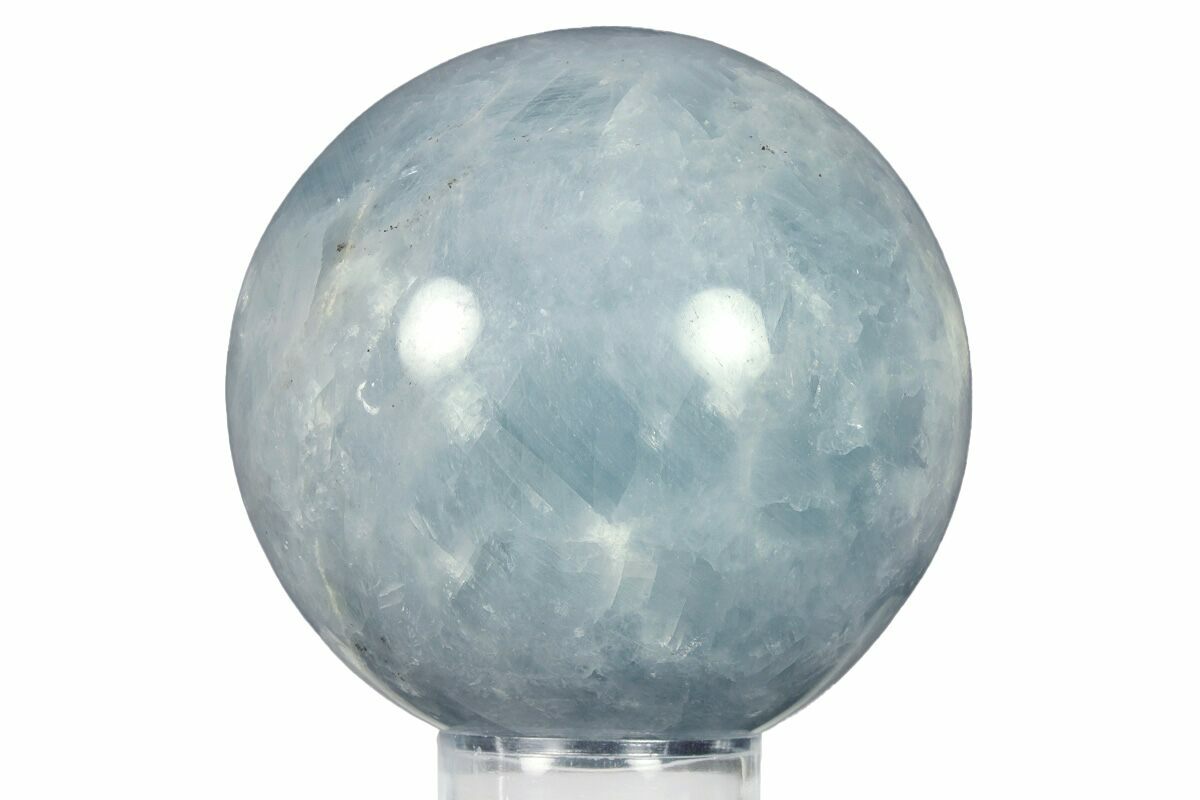 This is a beautiful, 2.9" wide polished sphere crafted from blue calcite from Madagascar. It has been flawlessly polished to a glossy finish to highlight the mineral's attractive blue color.