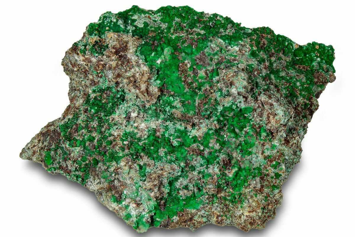 This is a beautiful formation of striking green conichalcite microcrystals that formed as botryoidal aggregates. It was collected from the Gold Hill Mining District of Tooele County in western Utah. It closely resembles cornwallite, another green copper-based mineral found in this mine that also forms in botryoidal formations.