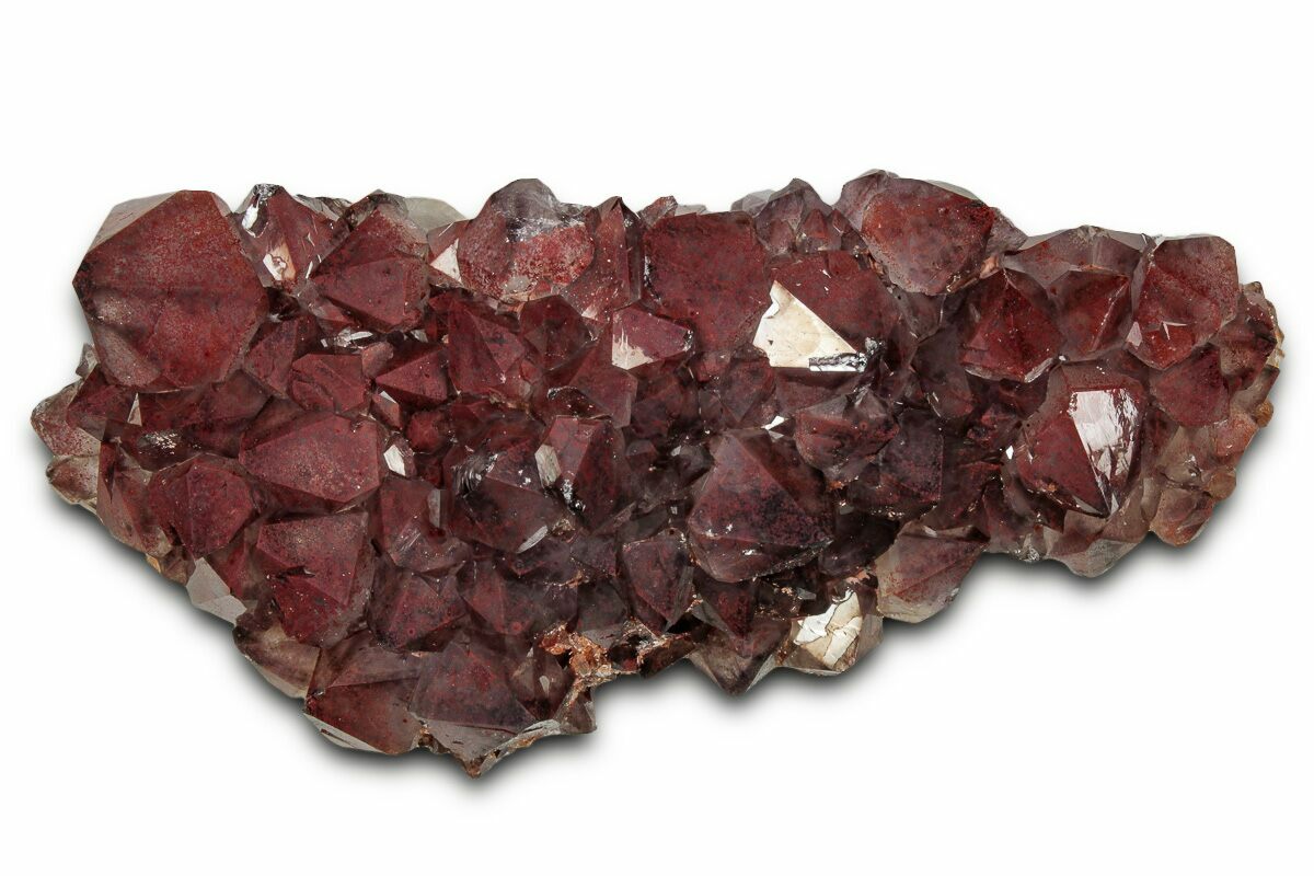 Thunder Bay amethyst is known for its impressive color range, spanning from soft, lavender hues to deep, nearly black tones referred to as “black amethyst.” What sets this locality apart, however, is its distinctive red hematite inclusions. These appear as microscopic disks, spherules, or dust-like clouds suspended within the quartz, creating brilliant flashes of red and orange when the crystals catch the light. In some specimens, the hematite is so pervasive that whole sections—and occasionally entire crystals—take on a warm reddish glow. This combination of rich purple quartz and iron-derived coloration gives Thunder Bay amethyst its unmistakable and highly sought-after appearance.
