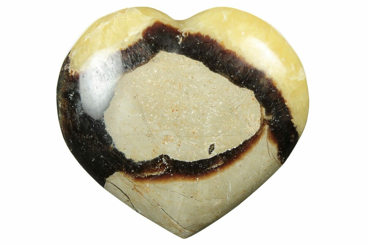 This is a gorgeous septarian nodule that has been hand carved/polished into the shape of a heart. The septarian comes from the Betsiboka Region of Madagascar and was deposited during the Jurassic period.