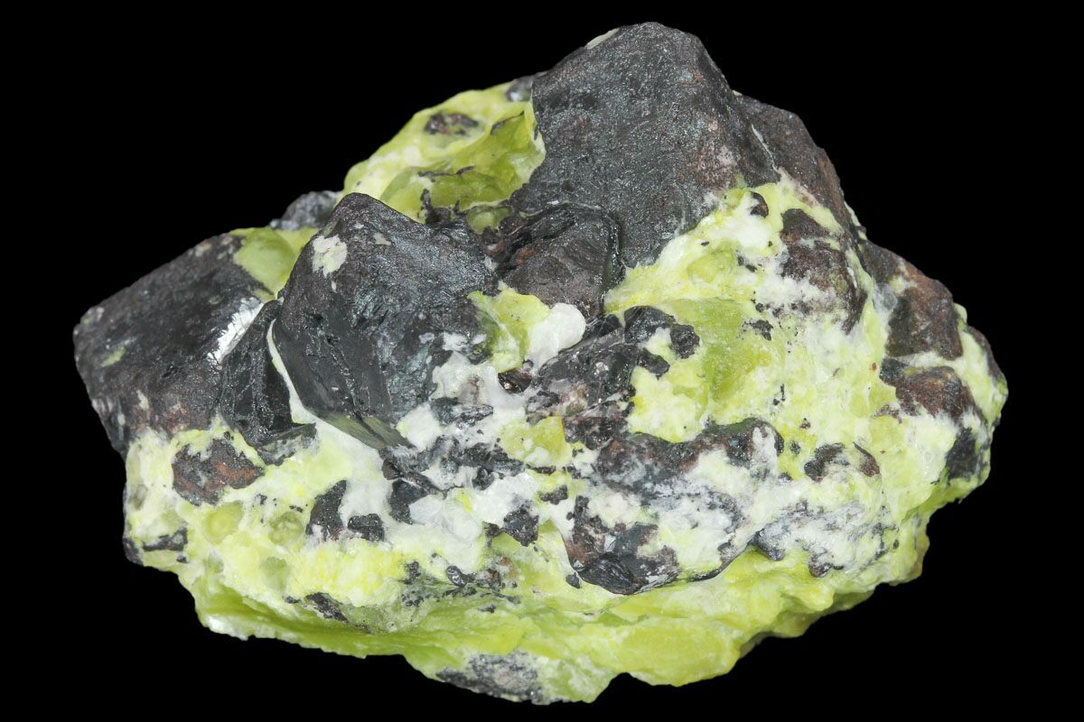 Lizardite is a member of the serpentine mineral group, forming as a soft, fine-grained, sheetlike silicate in low-grade metamorphic environments. It typically develops when ultramafic rocks such as peridotite undergo hydrothermal alteration, creating its signature waxy luster and soothing green to yellow-green coloration. The mineral’s name comes from the Lizard Peninsula in Cornwall, England, where it was first described. Lizardite often occurs in massive, fibrous, or platy aggregates and may display attractive veining or mottling caused by associated minerals like magnetite or brucite.