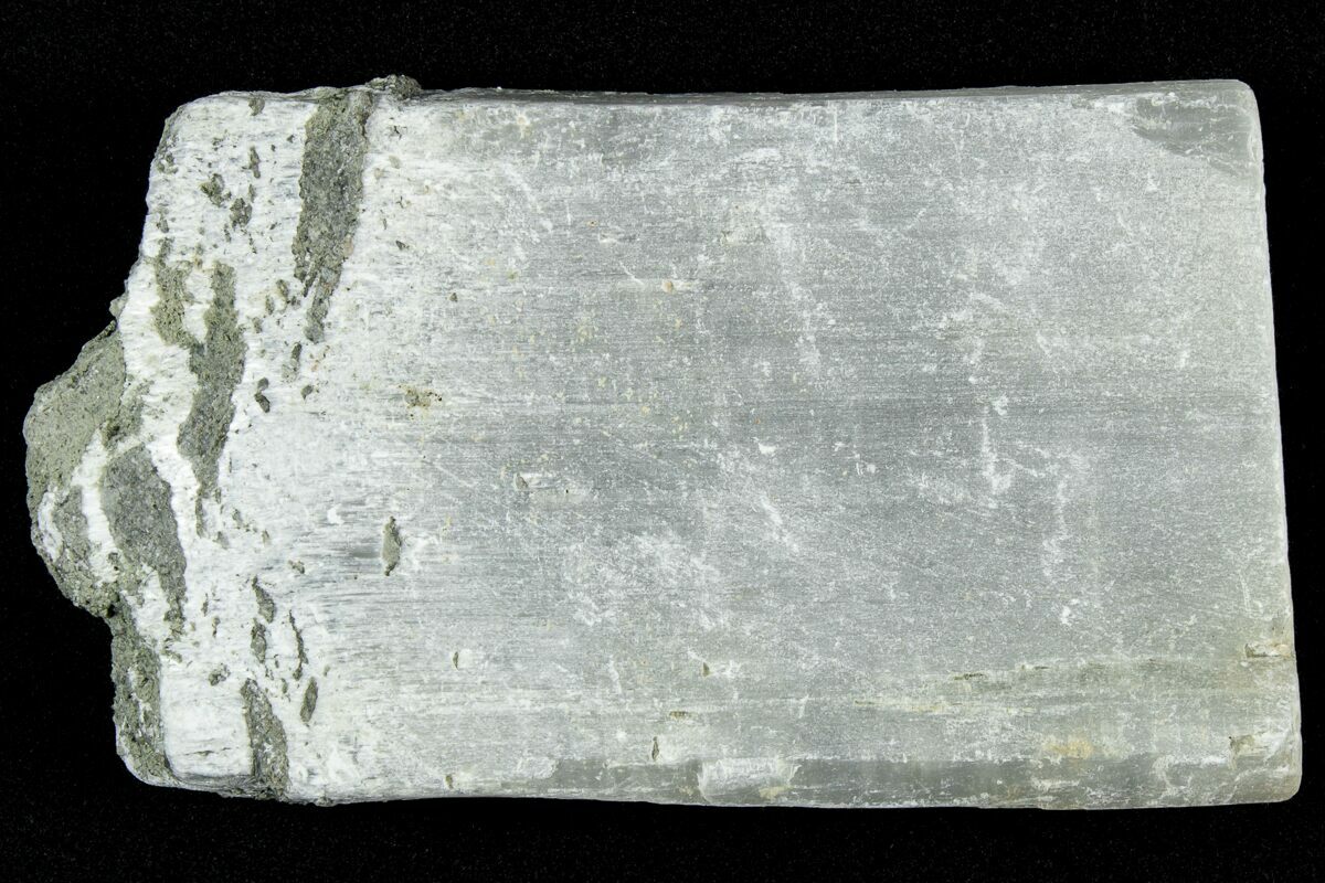 This is a 2" long natural formation of ulexite collected from Kern County, California. It has been left in its rough state, so it doesn't display the optical properties often seen in polished specimens. This piece, however, would be a good candidate for a polishing project.