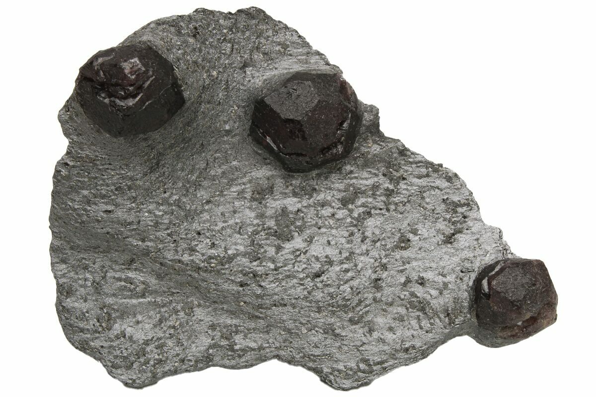 2" Plate of Three Red Embers Garnets in Graphite - Massachusetts