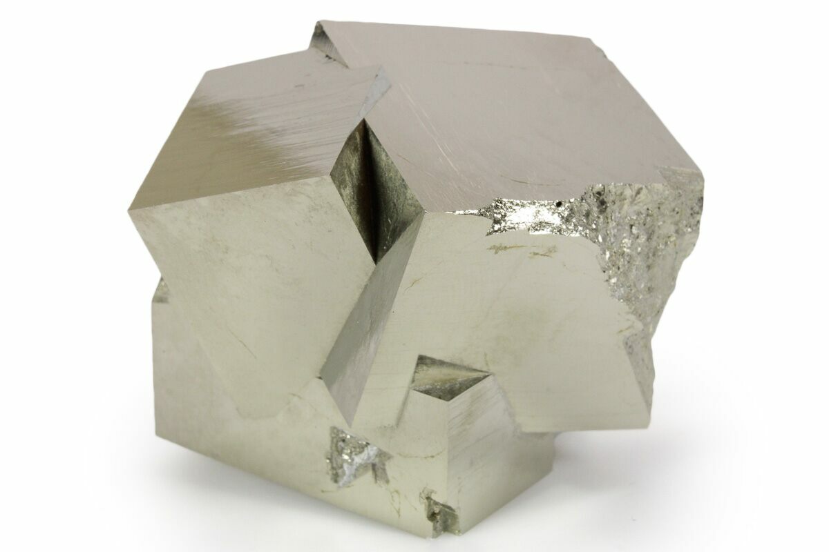 At first glance some people assume that these pyrite cubes are man-made, but the amazing thing is that they are natural! Pyrite from this location is famous for its beautiful shine, near-perfect cubic formation, and sculptural appearance. Because the matrix rock is soft, the cubes often come loose during collection. Care is taken during preparation to stabilize, repair, and make sure everything is remounted in its natural position: no specimens are composites. This means that nearly all of the pyrite cubes still in the rock from this locality have been remounted, and most clusters of multiple cubes have been stabilized.
