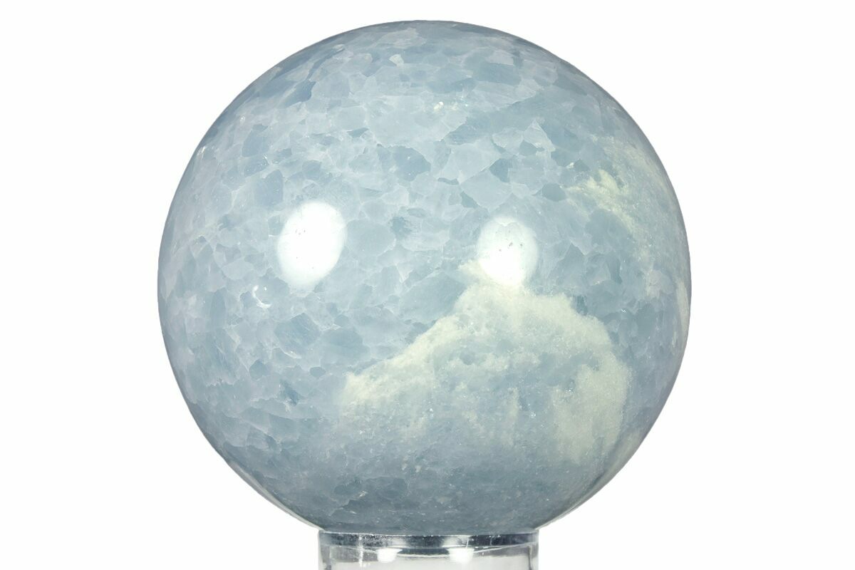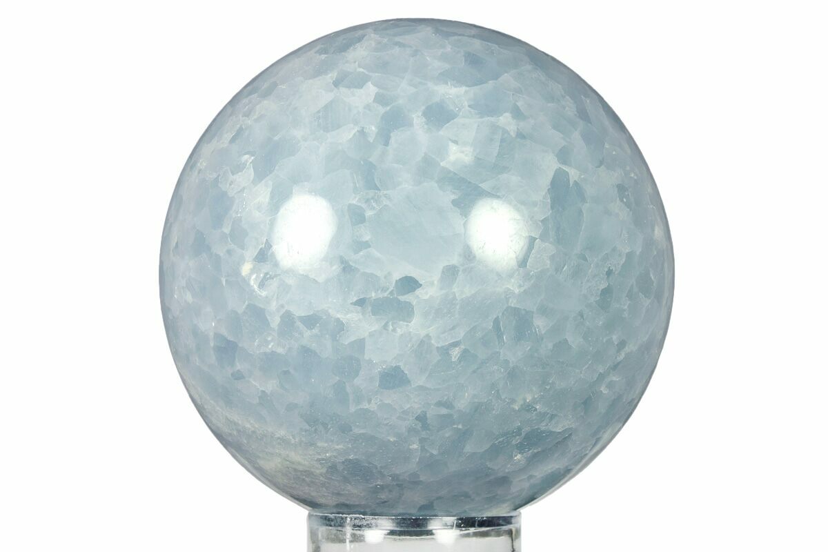 This is a beautiful, 3.0" wide polished sphere crafted from blue calcite from Madagascar. It has been flawlessly polished to a glossy finish to highlight the mineral's attractive blue color.