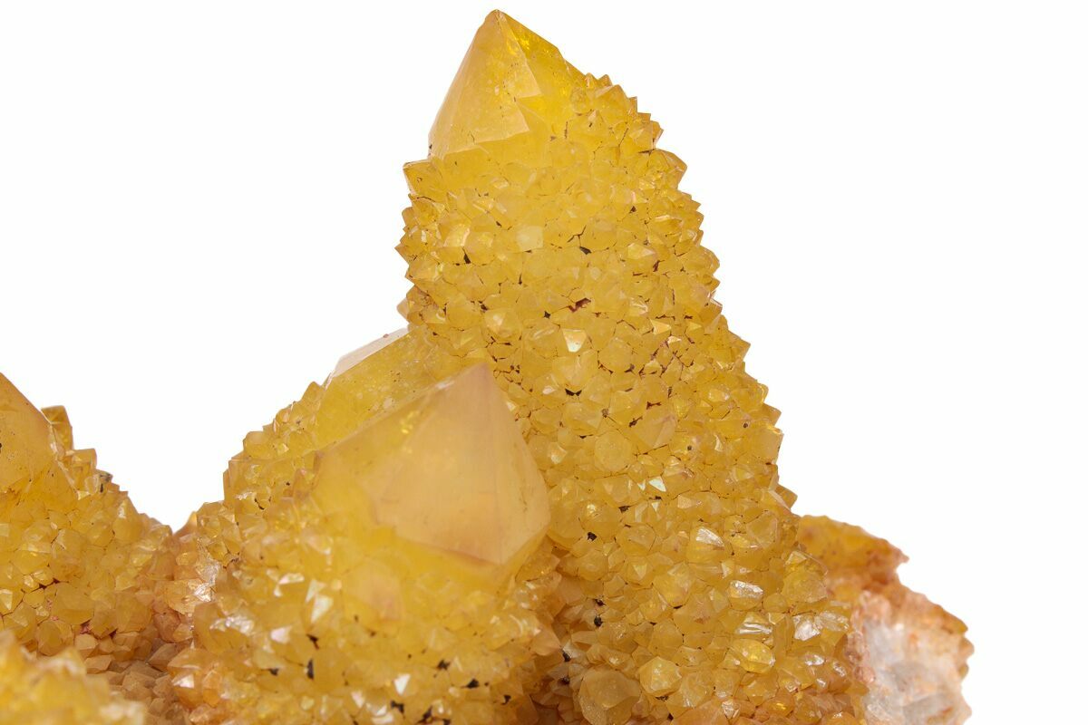 This is a beautiful orange cactus quartz cluster from the Boekenhoutshoek area of South Africa. It has a unique orange/yellow coloration due to the presence of iron oxides (limonite).