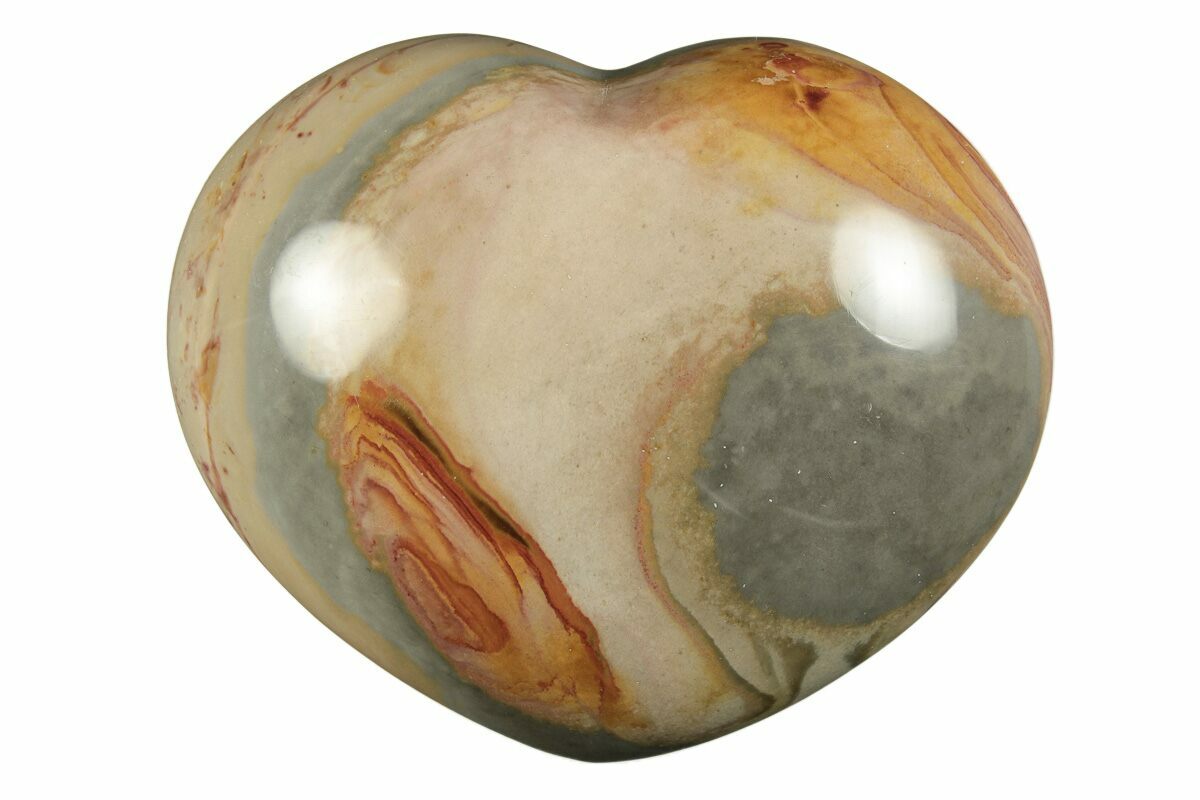 This is a beautiful, 3.05"-wide hand-polished piece of polychrome (picture) jasper found in the deserts of Madagascar. This specimen has been sculpted and polished into the shape of a heart.