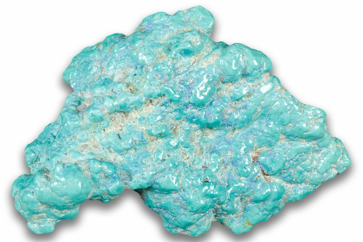 Turquoise is a prized gemstone known for its captivating shades of blue to green, formed through the interaction of copper, aluminum, and phosphate in arid, mineral-rich environments. Throughout history, it has been valued by many cultures for its beauty and rarity. Chilean turquoise, though less widely known than material from regions like the American Southwest or Iran, offers its own distinctive appeal. It is primarily mined in northern Chile, particularly in the Atacama Desert near cities like Copiapó and Ovalle, where copper mining is abundant. This turquoise often exhibits vivid blue to blue-green tones, frequently accented by striking veins of brown, black, or golden matrix. Its bold coloration and earthy character make Chilean turquoise a unique and sought-after variety among collectors and jewelry artisans alike.