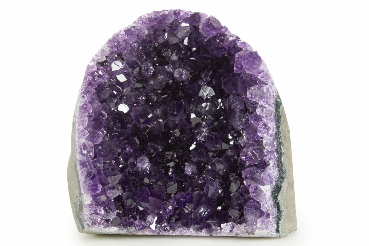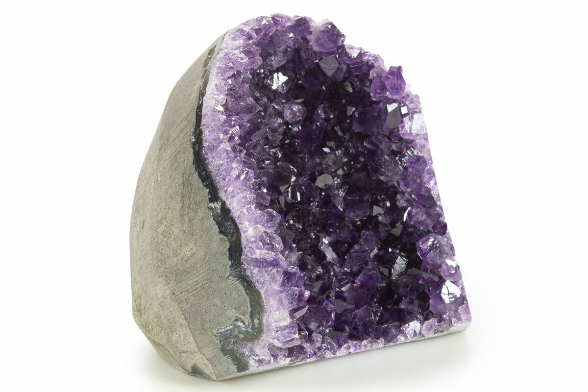 This is a 3.1" grape-jelly purple amethyst geode section from the famous amethyst mines in Artigas, Uruguay. The base has been cut flat so that it stands up nicely on a flat surface.