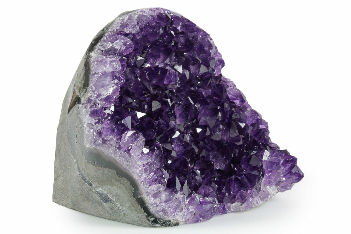 This is a 3.1" grape-jelly purple amethyst geode section from the famous amethyst mines in Artigas, Uruguay. The base has been cut flat so that it stands up nicely on a flat surface.