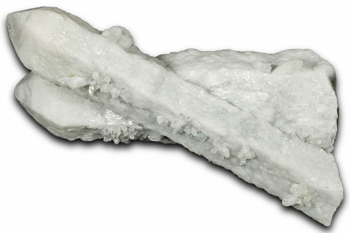 This is a beautiful milky quartz crystal cluster from the Huanggang Mine of Inner Mongolia, China. This quartz is commonly referred to as "candle quartz" due to its waxy candle-like appearance. It's partially covered in secondary quartz crystals.