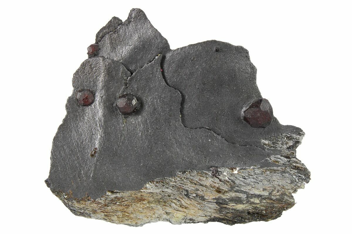3.1" Plate of Three Red Embers Garnets in Graphite - Massachusetts