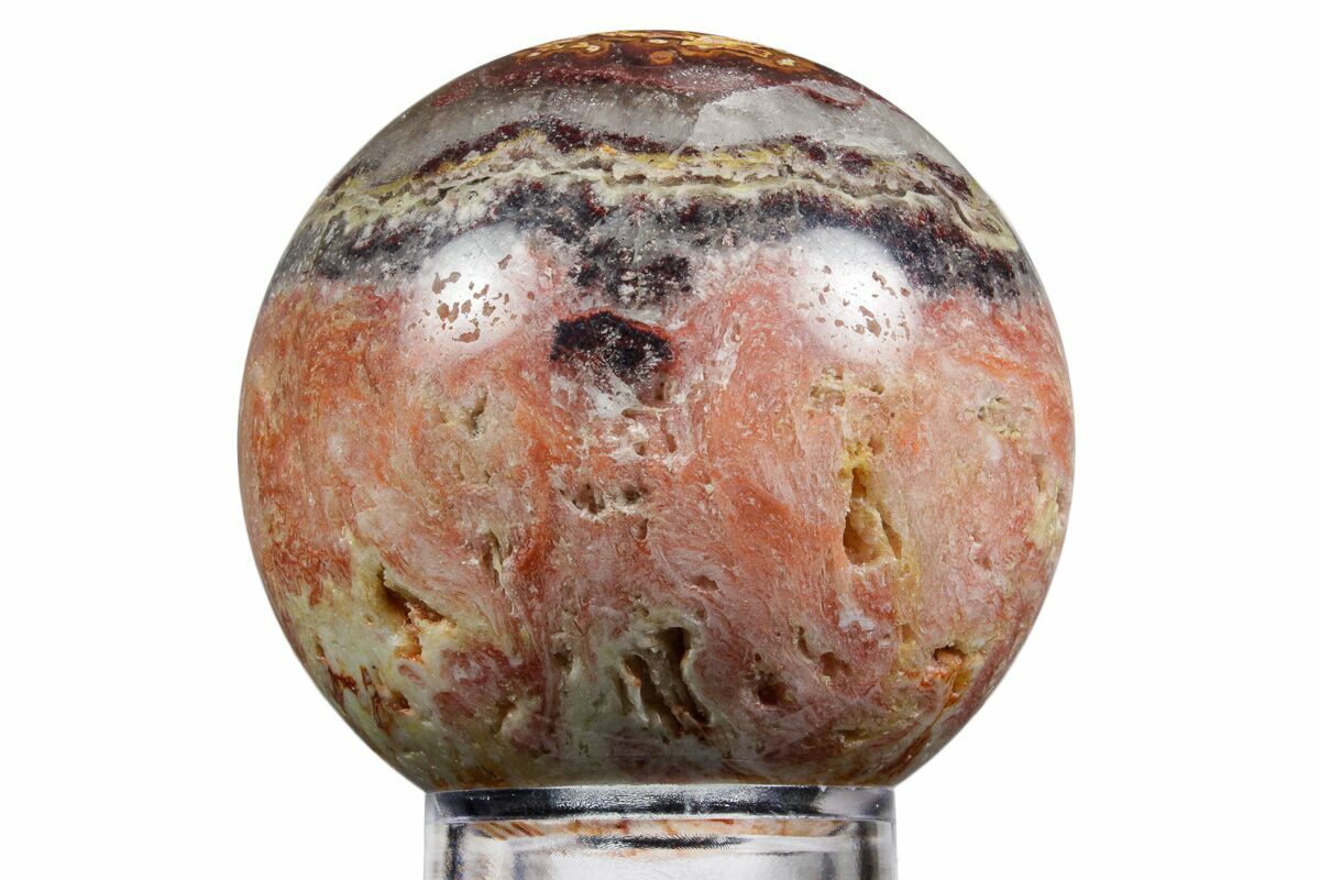 This is a beautiful, colorful sphere sculpted from Wild Fire Opal collected from Milford County, Utah. It is part of a relatively new find from the Bubble Opal Claim. It has been flawlessly polished all the way around to a glossy finish.