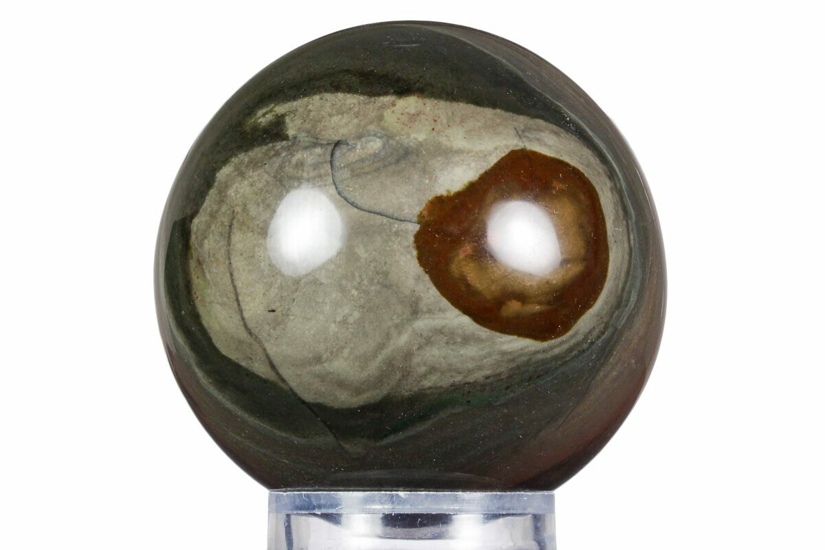 This is a beautiful, 3.1" wide hand polished sphere made from polychrome jasper found in the deserts of Madagascar. This variety of jasper is prized for its swirl of earthy tones and the occasional flash of pink, red, or orange.