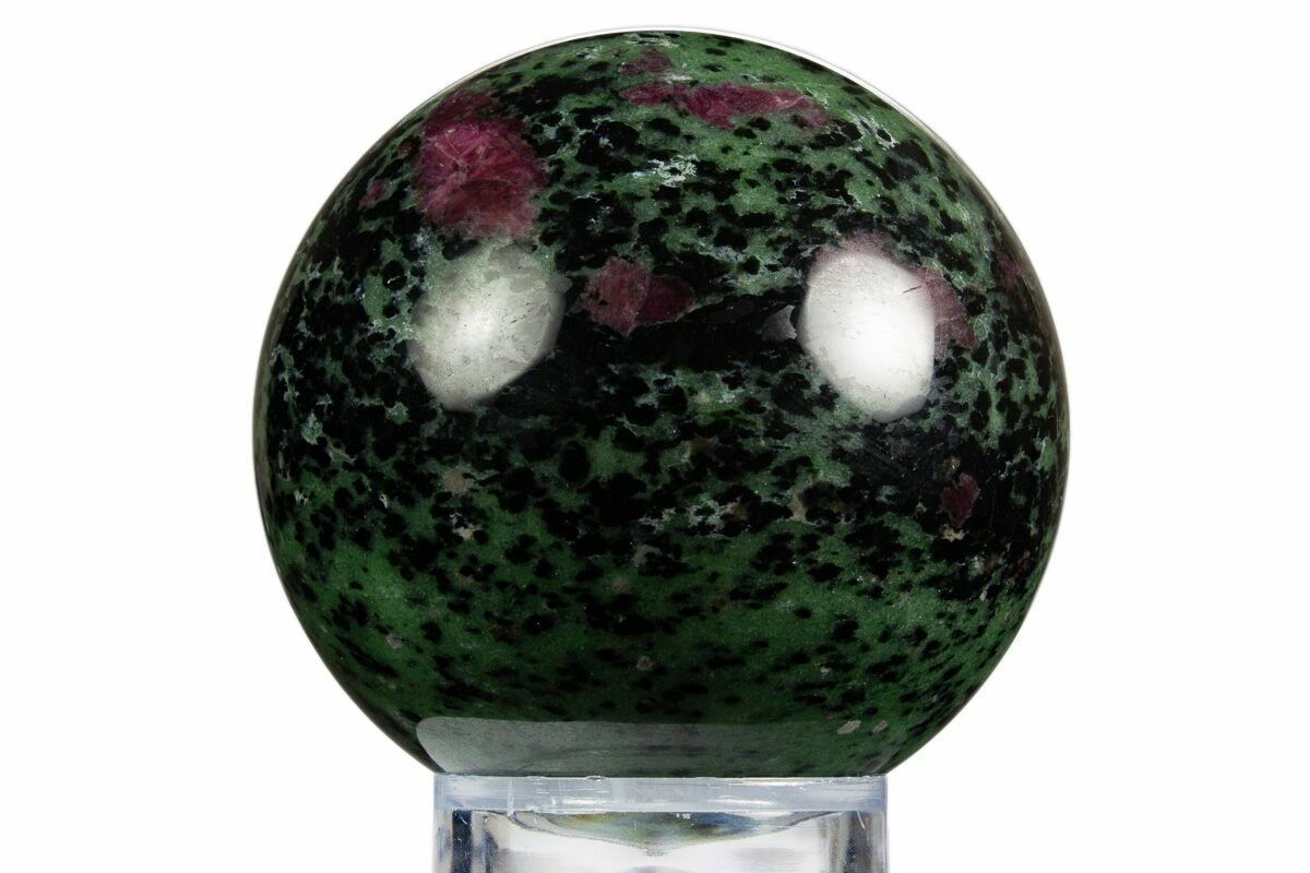 This is an absolutely gorgeous, polished sphere crafted from ruby zoisite collected in Tanzania, Africa. It measures 3.1" wide and comes with the pictured display stand.