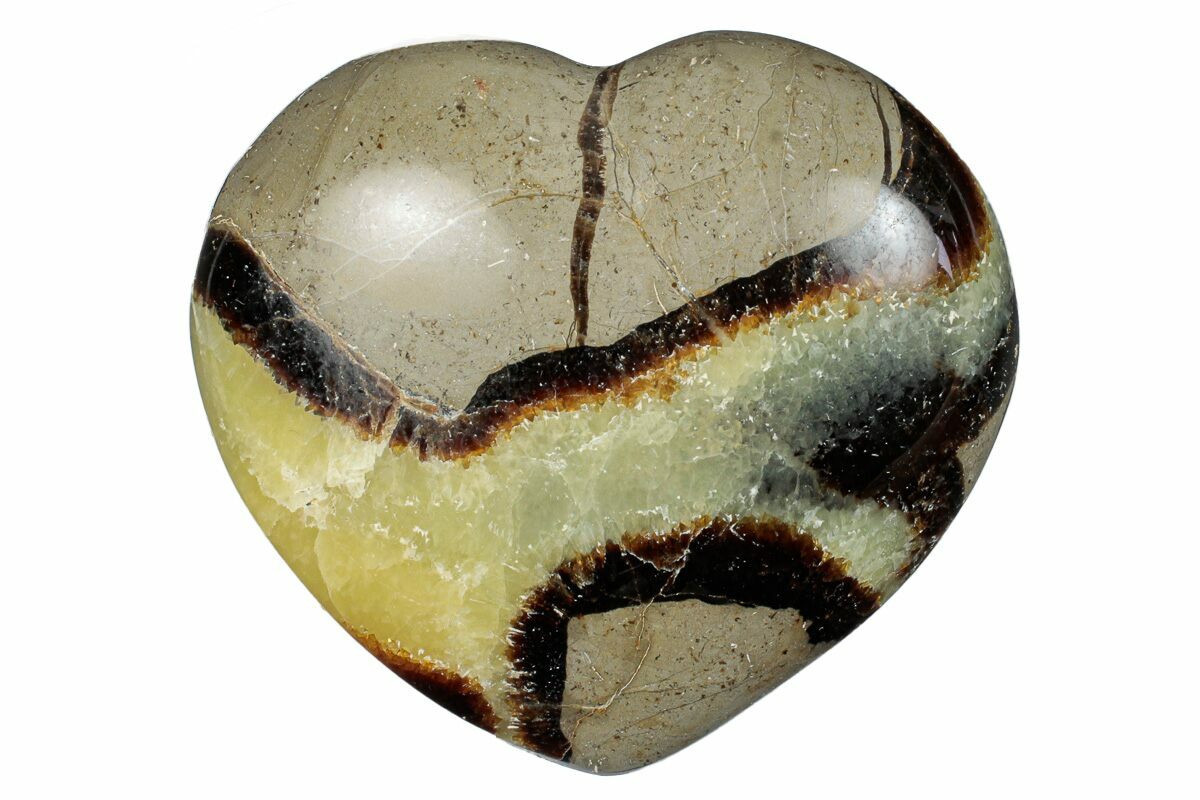 This is a gorgeous septarian nodule that has been hand carved and polished into the shape of a heart. The septarian comes from the Betsiboka Region of Madagascar and was deposited during the Jurassic period.