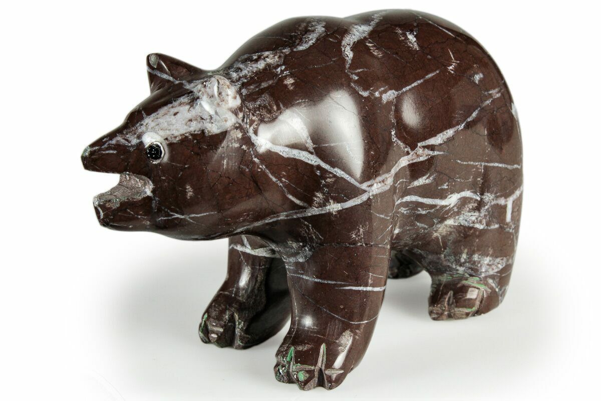 This is a fun, 3.1" long polished bear sculpted from red jasper mined in the Philippines. The stone has been meticulously shaped and polished to create this unique piece.