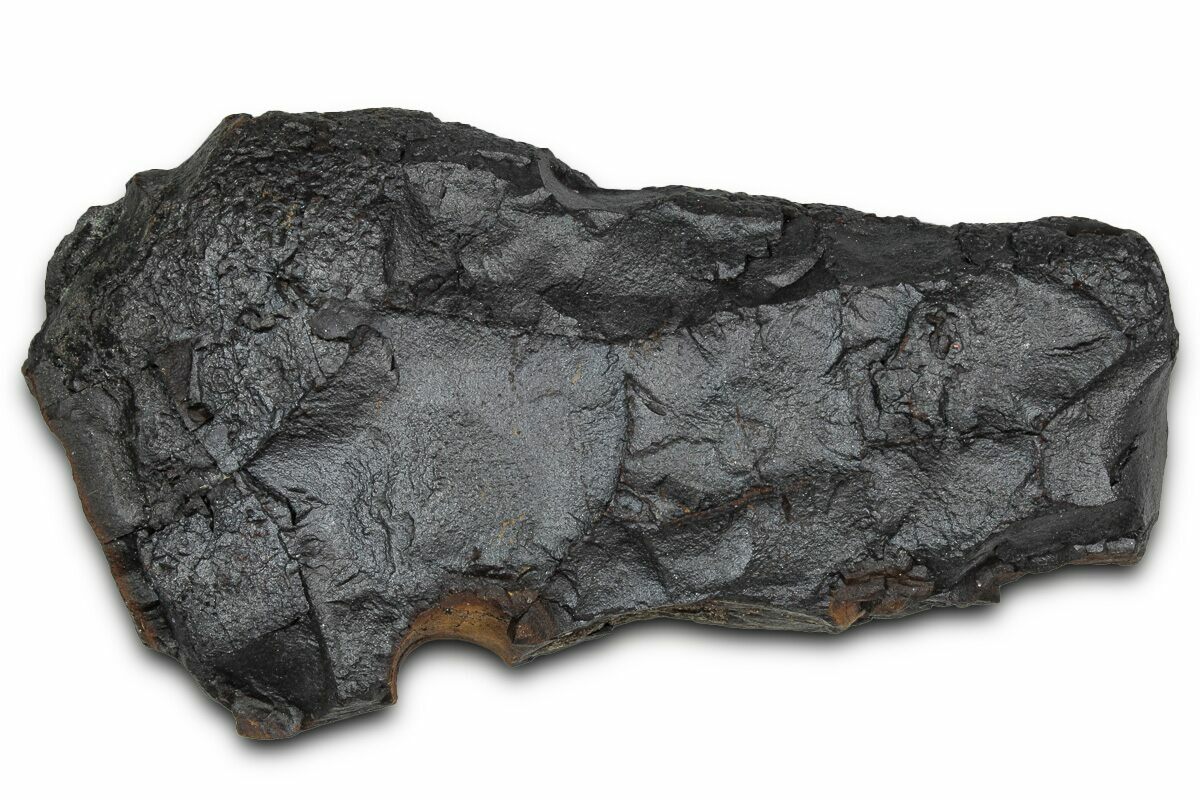 Dragon scale stone is the trade name of this type of iron nodule found in the Hell Creek Formation of North Dakota. They are found alongside dinosaur bones throughout the Hell Creek deposits, often lying next to dinosaur remains. Despite their name, these stones have nothing to do with dragons aside from their unique polygonal patterning, reminiscent of dragon scales. Their composition is primarily iron oxide with a siderite core and manganese/iron oxides that give them their dark red-brown patina.