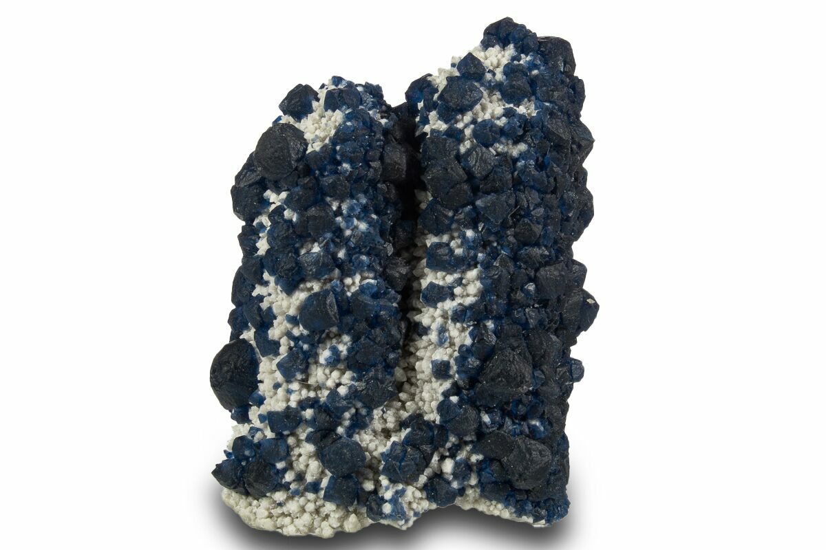 This is a beautiful deep-blue fluorite specimen collected from the Number 4 Mine in the Huanggang Fe-Sn deposit of Inner Mongolia, China. The fluorite crystals have a cubic-octahedral structure to them, a unique characteristic of the fluorite coming from this deposit. The fluorite formed over secondary quartz crystals that entirely encrust the larger primary crystals, reminiscent of cactus quartz.