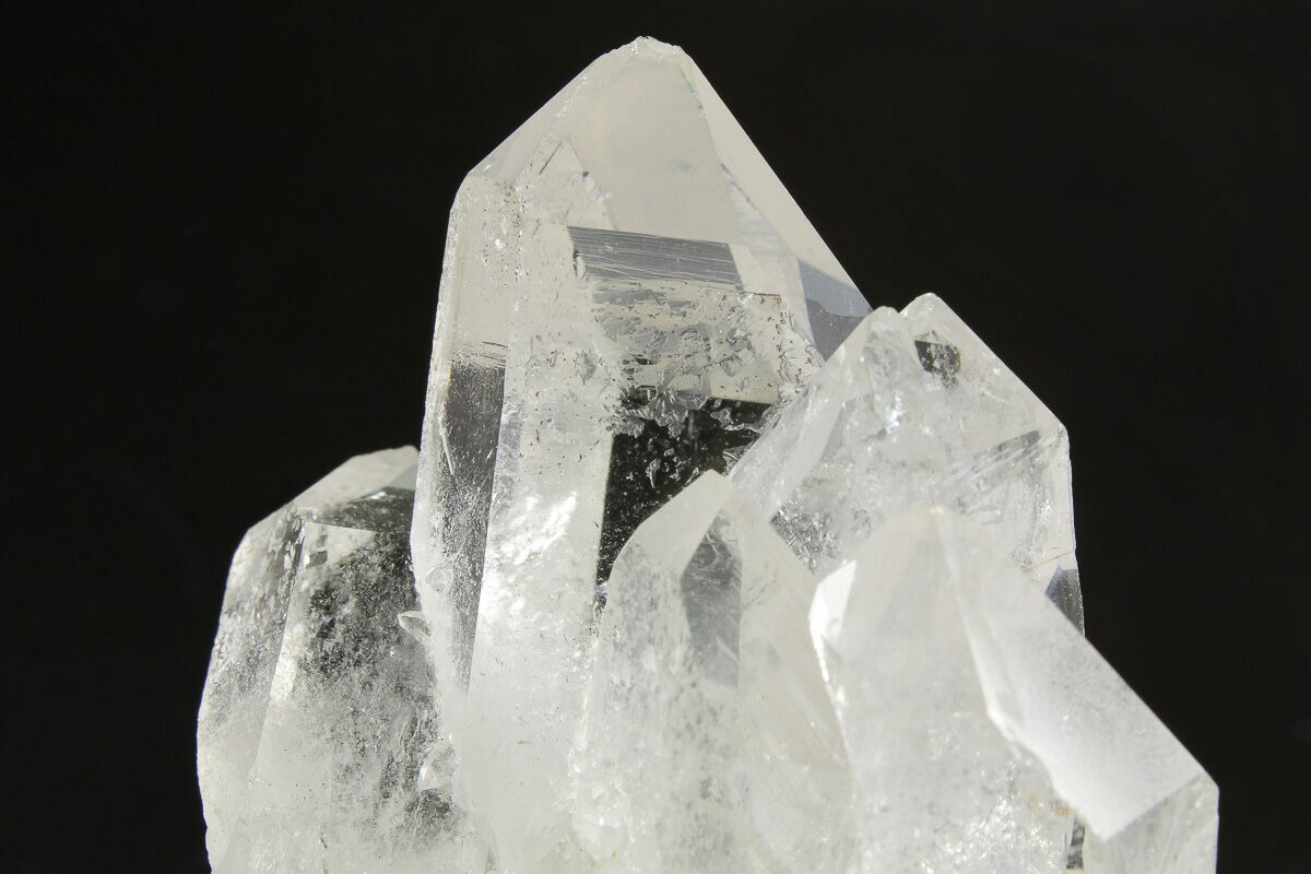 This is a 3.2" wide cluster of high-quality quartz crystals from Minas Gerais, Brazil. The clarity of this quartz is spectacular. Some faces have been polished to reveal the stunning clarity and structures of these crystals.