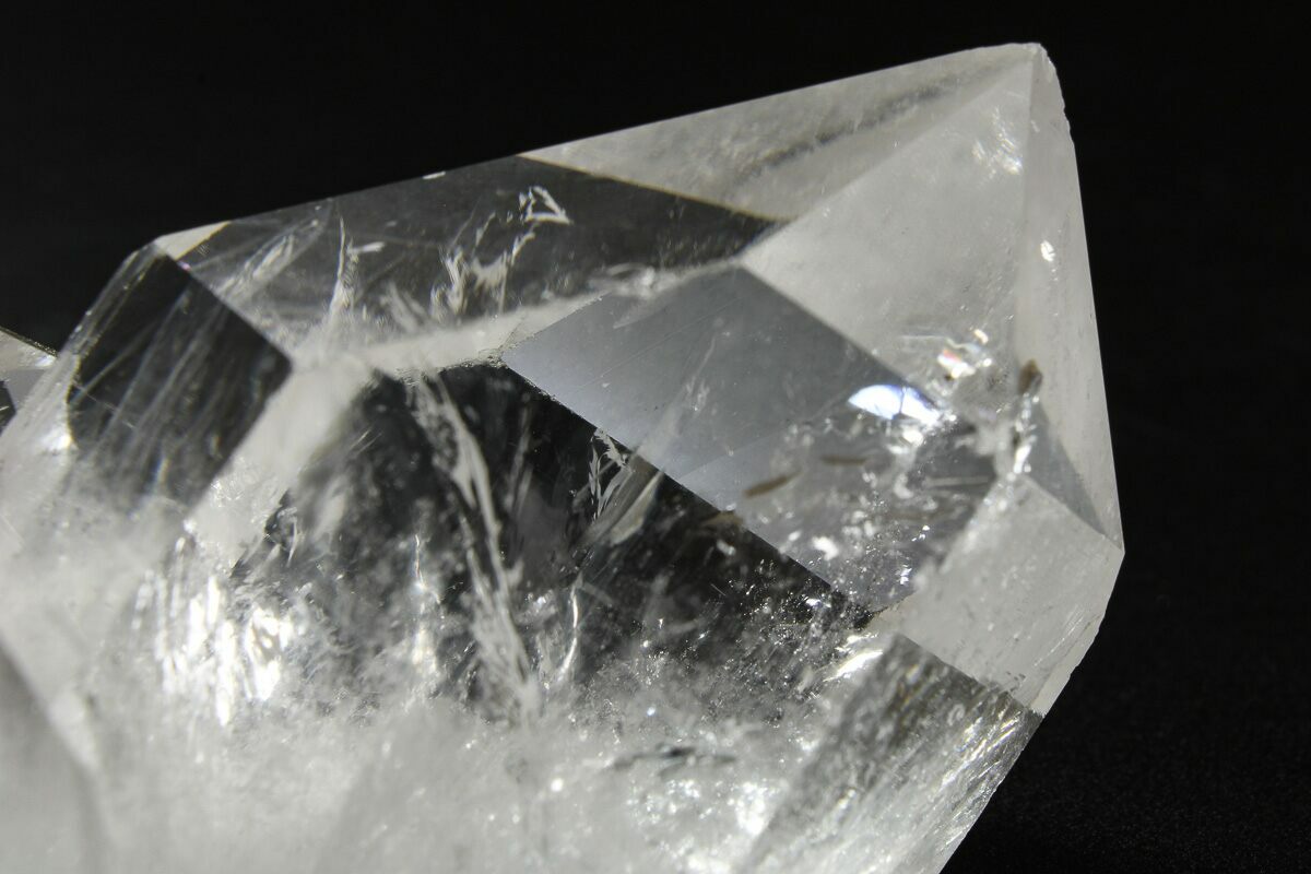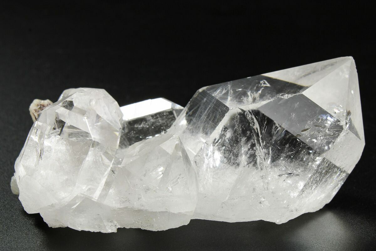 This is a truly unique 3.2" wide cluster of high-quality quartz crystals from Minas Gerais, Brazil. The clarity of this quartz is spectacular. The faces have been polished to reveal spectacular inner details in the crystals.