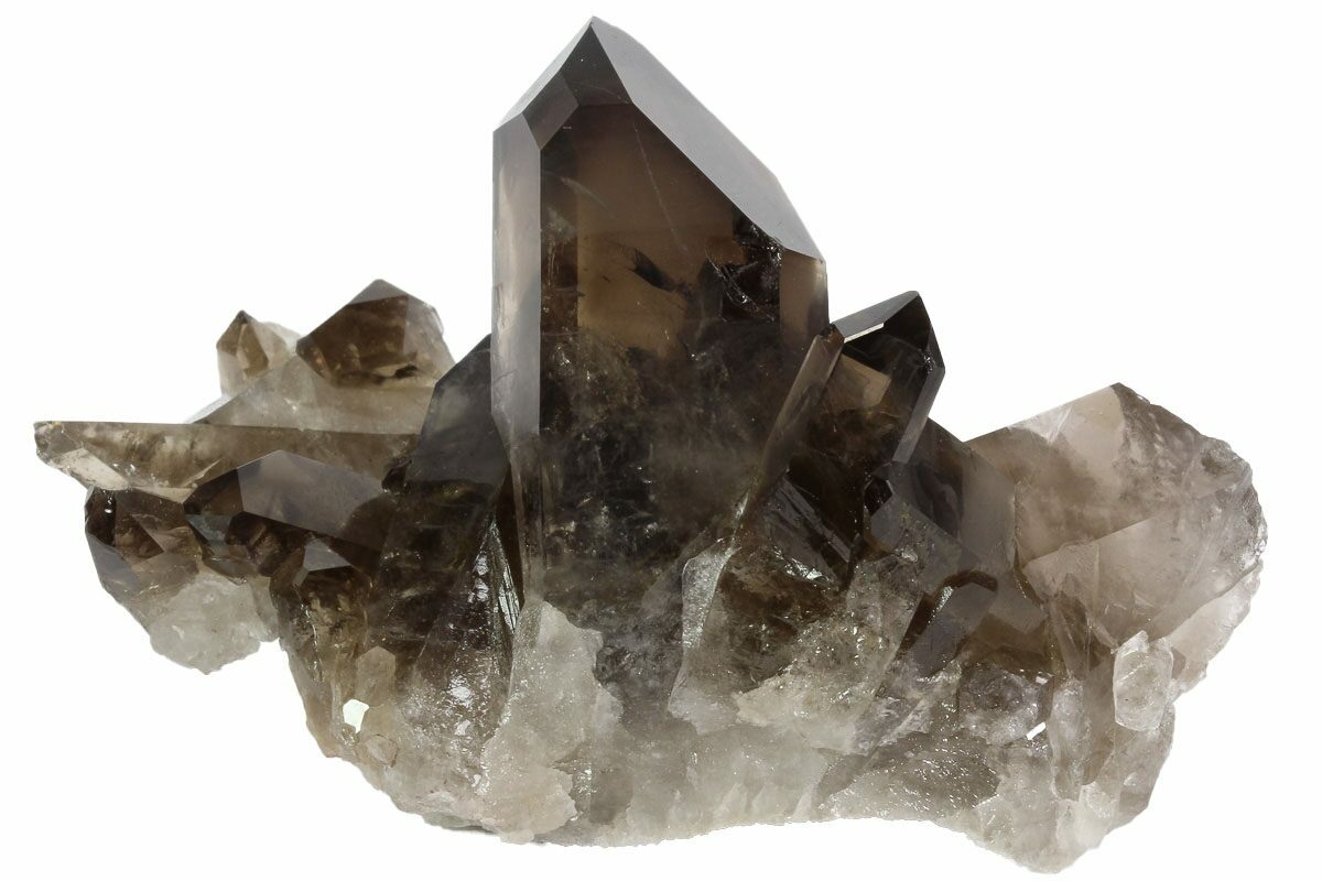 This is a beautiful, cluster of dark smoky quartz crystals from Minas Gerais, Brazil. There are crystals protruding from all sides of this specimen.