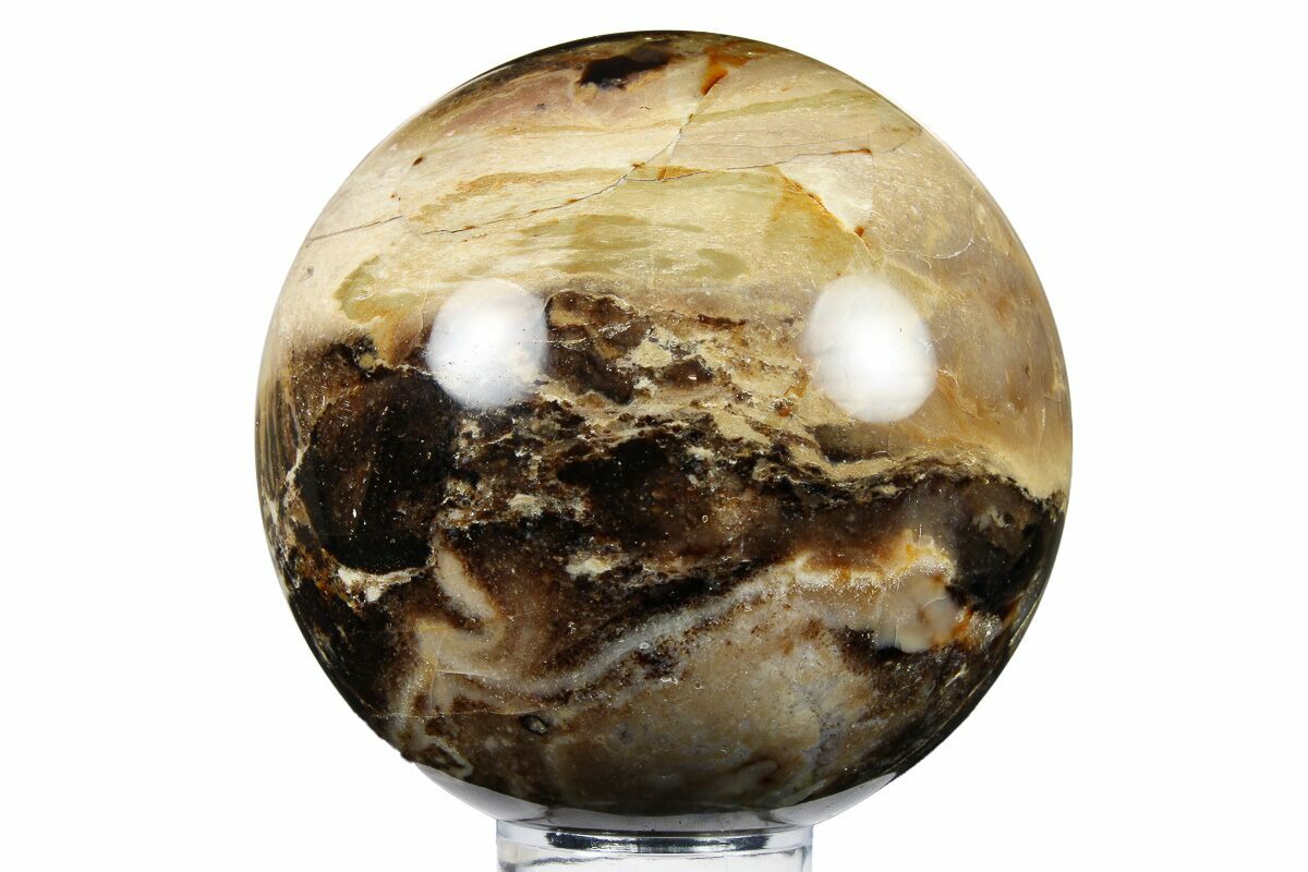 This is a 3.2" black opal sphere crafted in Madagascar. Comes with an acrylic ring stand.