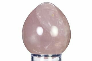 This is a 3.2" tall, polished rose quartz egg from Madagascar. This piece has been polished into a symmetrical egg from a larger chunk of rose quartz. The coloration is vibrant and stunning.