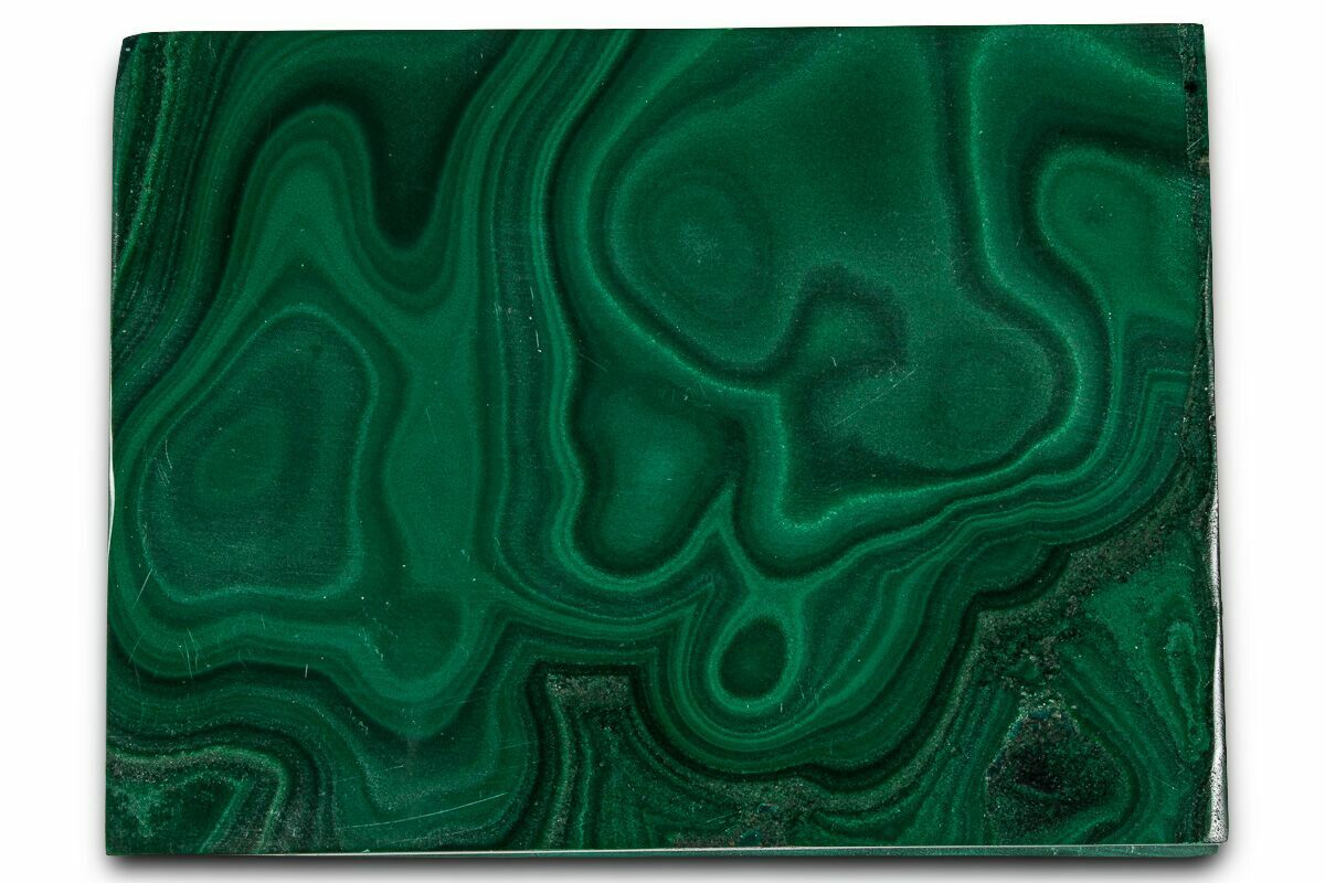 Malachite is an intense green copper-based mineral that can be found in a wide variety of forms. Malachite can grow in botryoidal masses, stalactitic formations, and reniform formations, typically as a tight cluster of fanning fibrous needles that make up a seemingly solid mass. As layers continue to stack during formation, banded patterns can sometimes begin to take shape, explaining the rings in all shades of green seen on most polished malachite specimens.