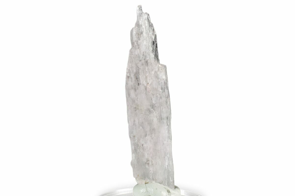 This is a beautiful, 3.25" long pastel purple-pink spodumene (kunzite variety) crystal that was collected from the Dara-e-Pech pegmatite field in the Kunar Province of Afghanistan. It has been mounted to an acrylic display base with mineral tack.