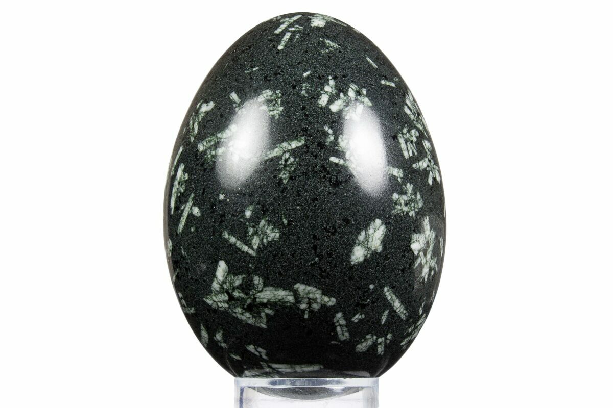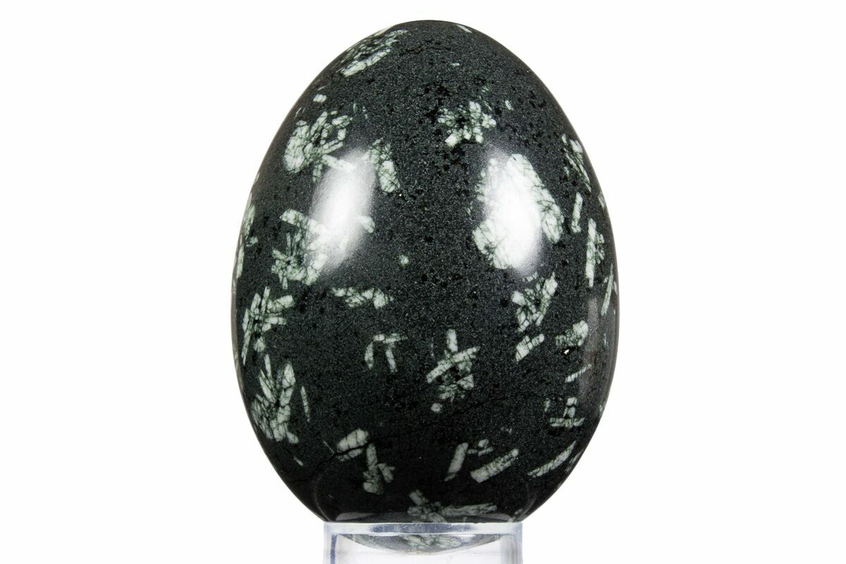 This is a beautiful piece of Chinese writing rock from Whim Creek, Western Australia that has been polished into an egg shape. This specimen measures 3.25 inches tall and its glossy polish allows the feldspar crystal formations to really stand out.