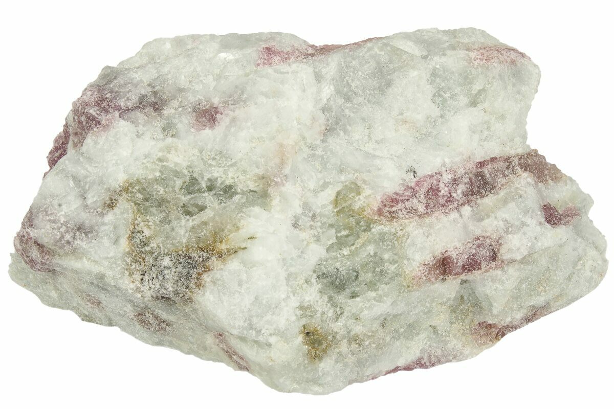 Rubellite is a pink-red variety of elbaite, a member of the tourmaline group. Elbaite is a form of tourmaline that is perhaps the most multicolored mineral. It has been discovered in virtually every color of the spectrum and has dramatically increased in popularity since the 1990s. While specimens are commonly faceted into gemstones, most high quality crystals are left as is, or are cut and sold as cross-sectional slices. Elbaite forms as short, stubby, and/or elongated prismatic crystals, often with lengthwise striations. Elbaite aggregations can occur as botryoidal, columnar, radiating crystals and in compact masses.