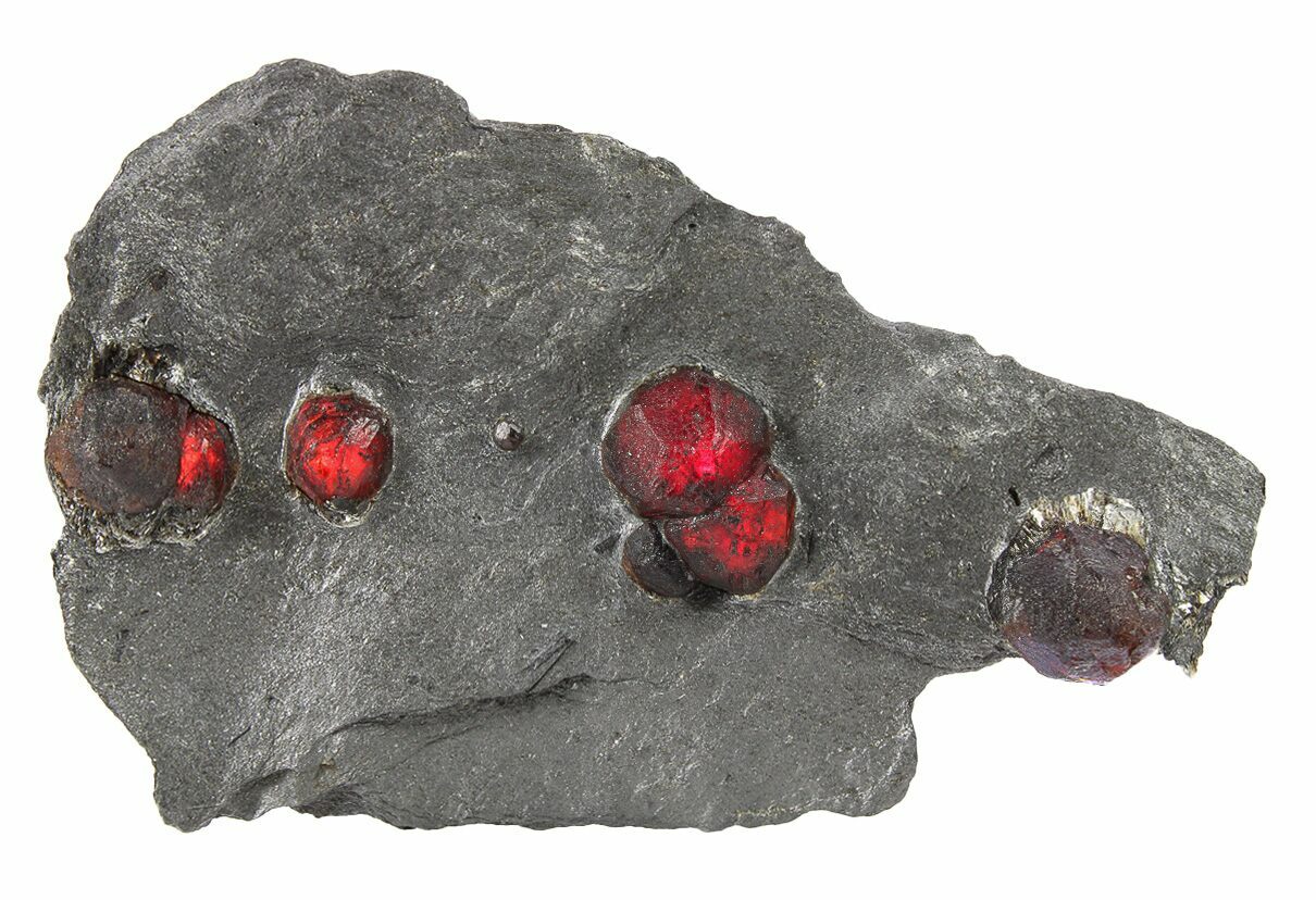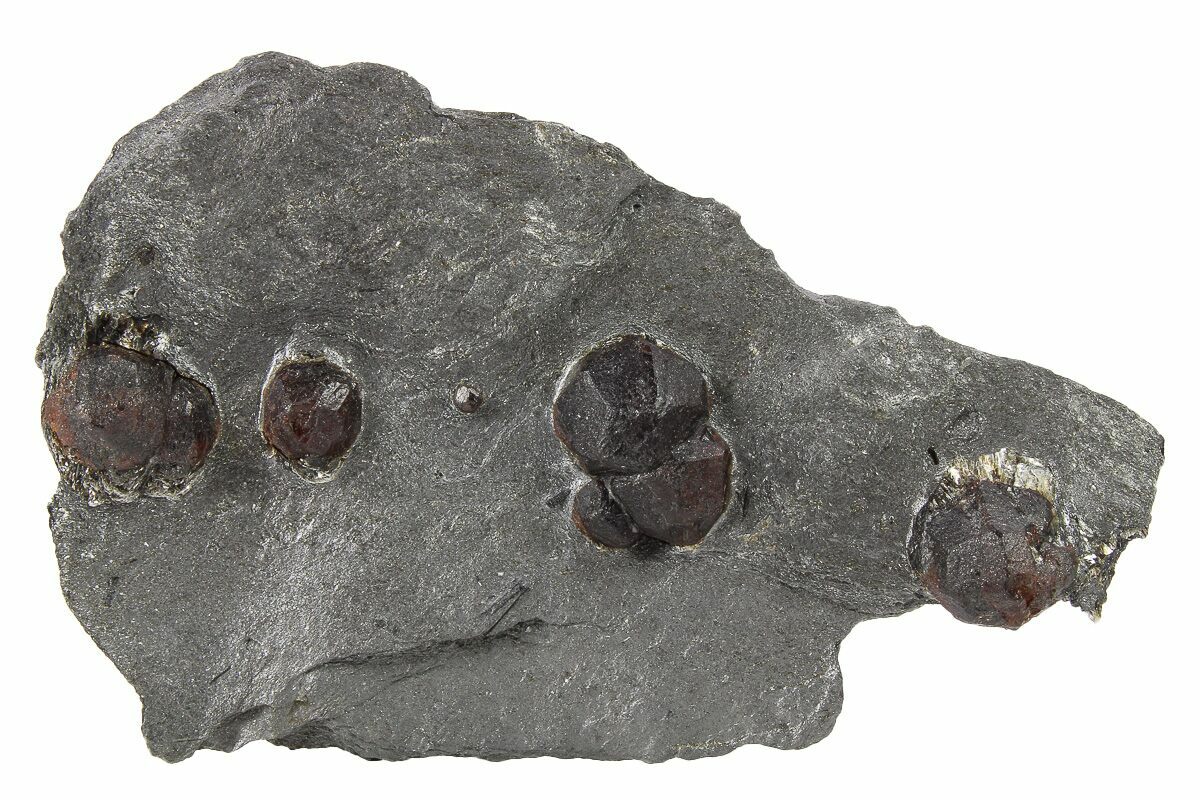 3.3" Plate of Four Red Embers Garnets in Graphite - Massachusetts