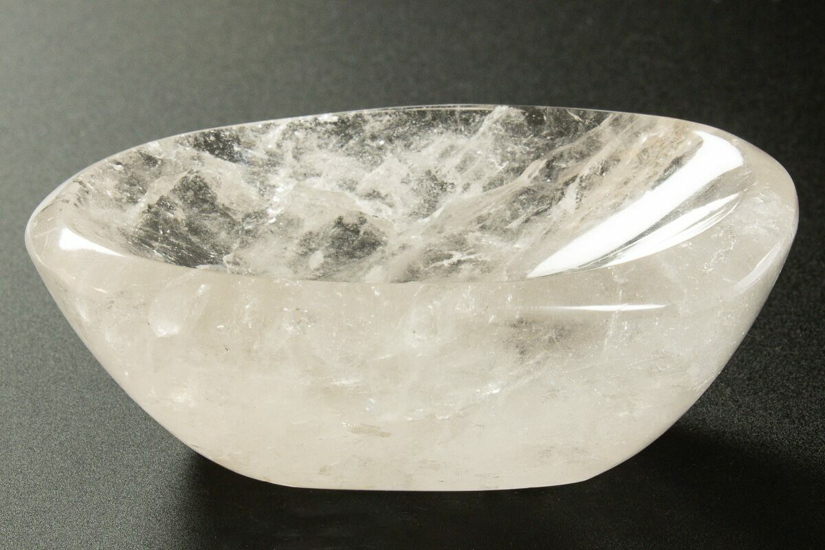 This is a 3.3" wide, polished quartz bowl/dish from Madagascar. The specimen has been shaped into a small dish after being cut from a bigger chunk of quartz. This specimen makes an excellent display and serves many practical purposes.