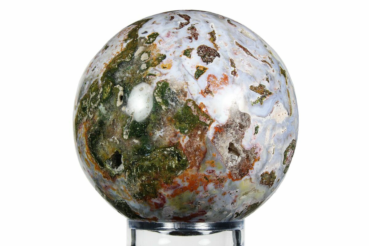 This is a type of agate and jasper that goes by the trade name "cosmic jasper", collected from Madagascar. It has been hand-polished from its original rough/natural state into a sphere.