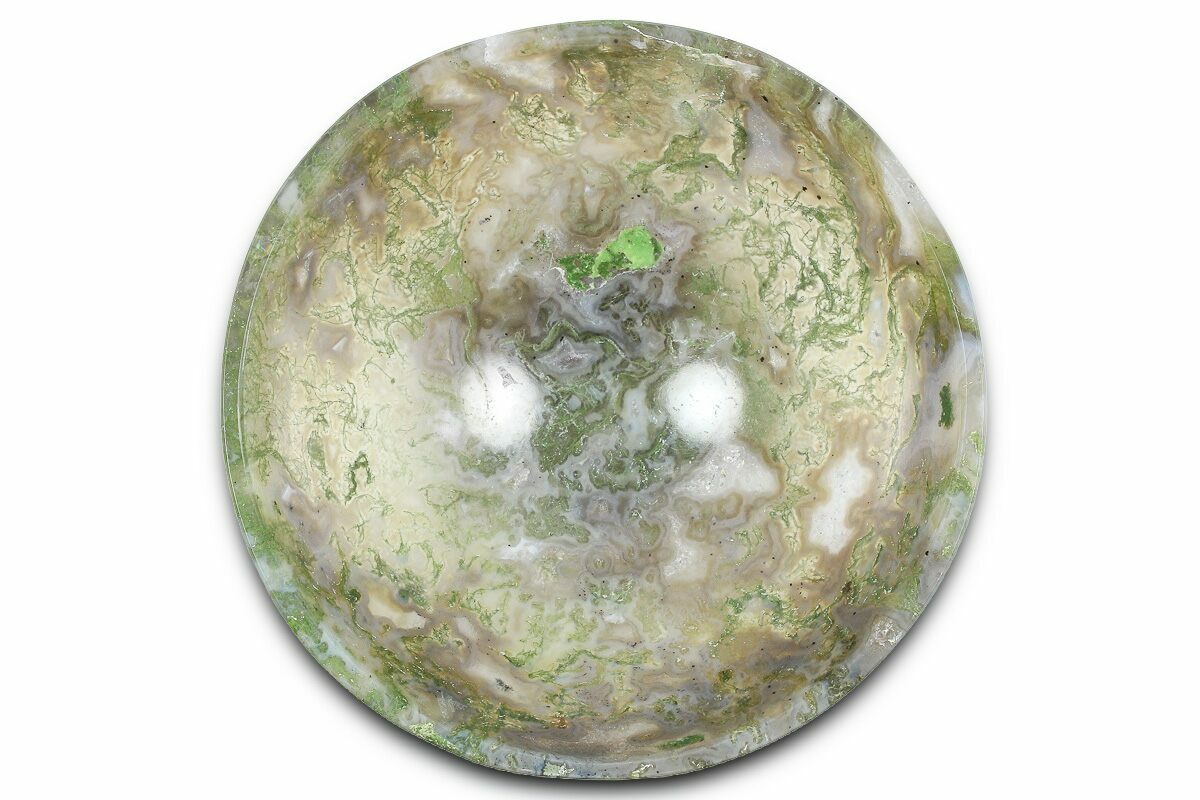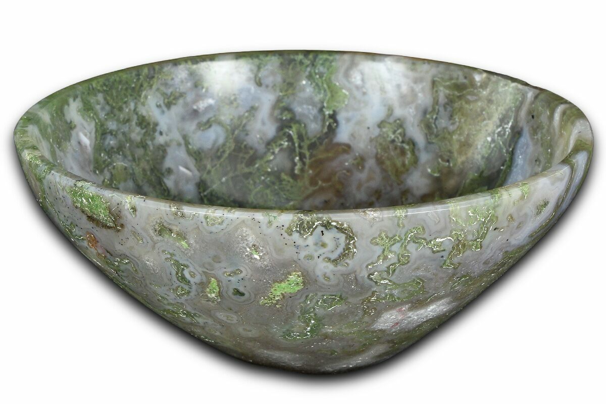 This is a 3.3" wide polished bowl that was formed from moss agate.