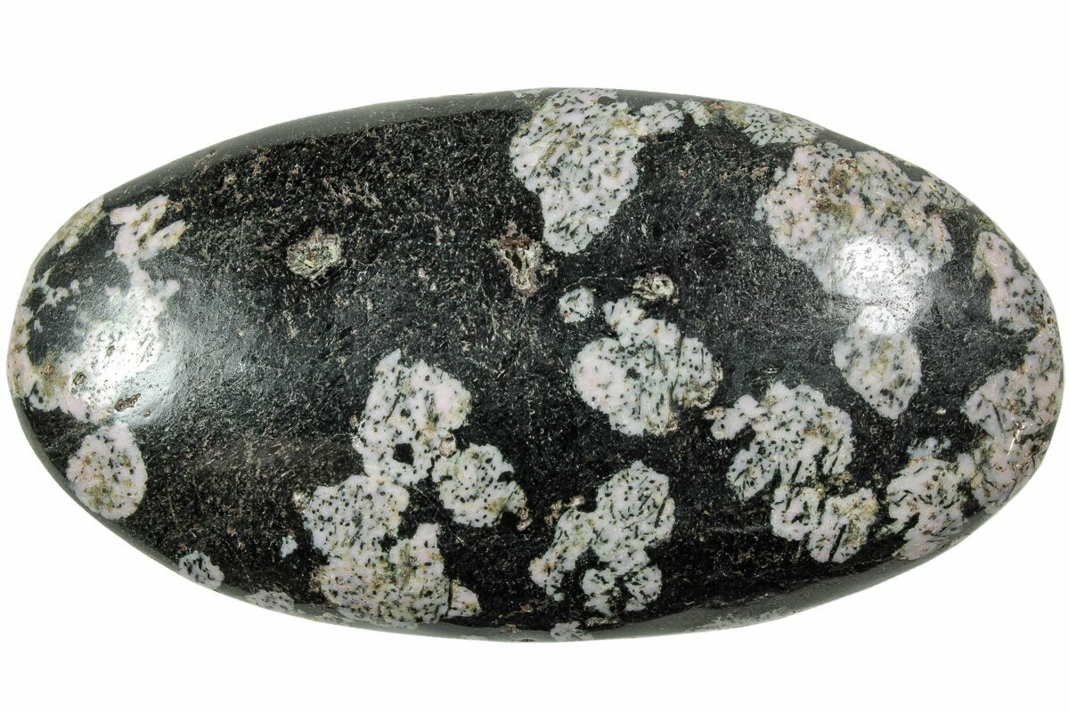 This is a 3.3" wide polished palm stone made from Pakistan snowflake stone