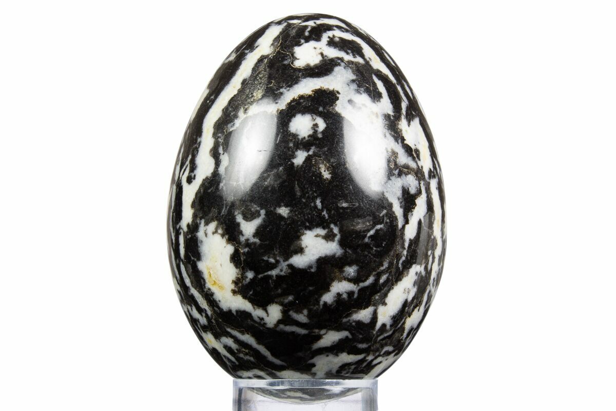 This is a gorgeous, 3.3" tall polished egg of zebra marble mined in Utah. The flawless polish really brings out the natural white and black "zebra" patterns of this beautiful stone.
