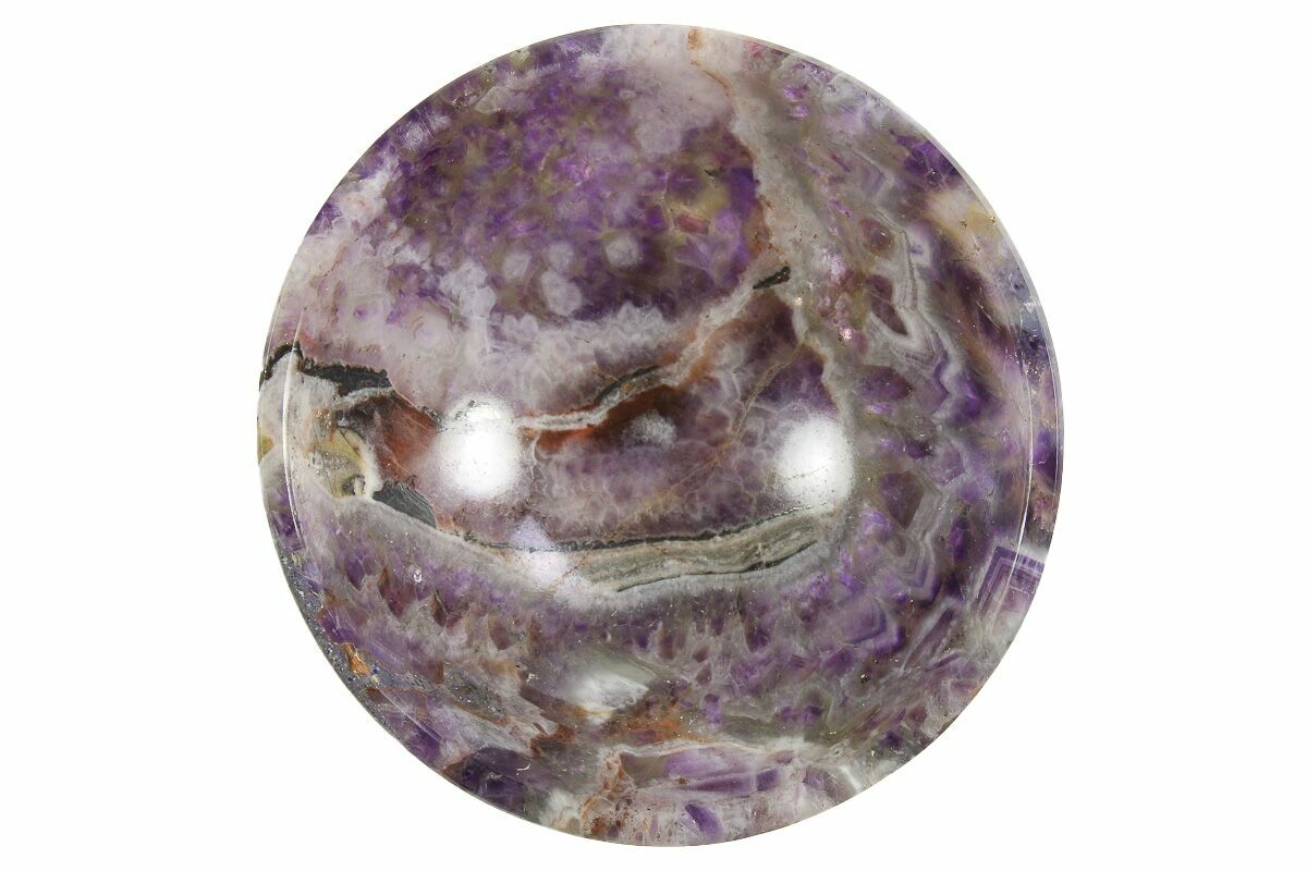 This is a 3.35" wide polished amethyst bowl. It has been hand carved/polished out of a solid piece of chevron amethyst.