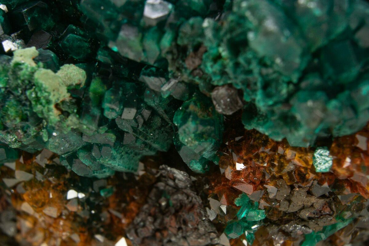 Dioptase is a showstopper in the mineral world—an electrifying copper silicate known for its mesmerizing, emerald-green color that seems to glow from within. Its vivid hues rival even the finest emeralds, but it’s the crystal clarity and intense brilliance that make collectors’ hearts race. Found in arid, copper-rich environments like the deserts of Namibia and Kazakhstan, dioptase forms stunning prismatic crystals that sparkle like tiny green beacons against contrasting matrix rock. While too soft for most jewelry, it’s a favorite among mineral collectors and museums for its sheer visual impact. Dioptase isn’t just a mineral—it’s nature’s answer to green fire in crystal form.