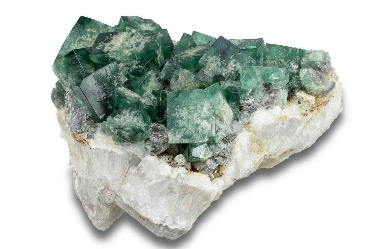 The Diana Maria mine is a part of the Rogerley quarry in County Durham, England. It began as a surface mining operation in 2017 and graduated into tunneling operations in 2018. Several pockets of breathtaking fluorite specimens have been discovered within the mine, including Graeber Jones, Snowstorm, Green Hill, Emerald Peaks, Heavy Metal, Purple Haze, and many more. Many of these pockets helped to establish new standards for the quality of Rogerley fluorite.