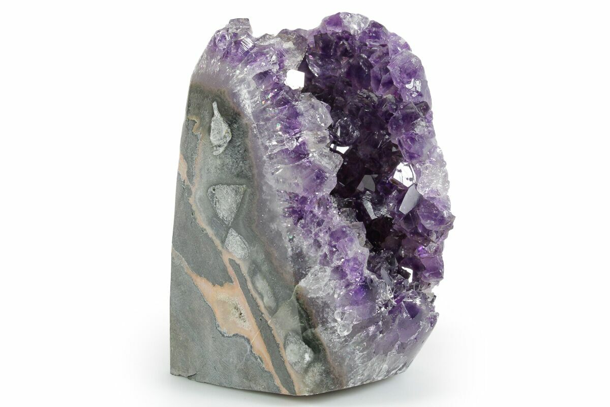 This is a 3.4" grape-jelly purple amethyst geode section from the famous amethyst mines in Artigas, Uruguay. The base has been cut flat so that it stands up nicely on a flat surface.