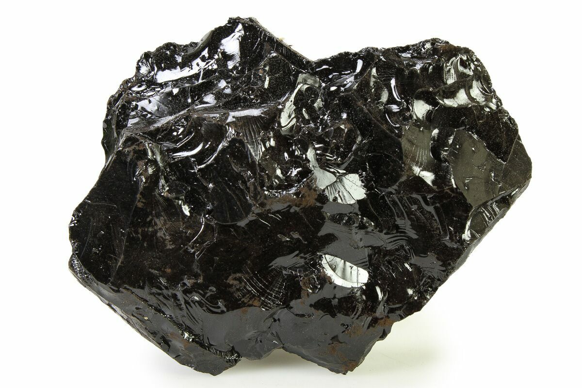 This is a 3.4" wide raw gilsonite specimen collected from the famous Uintah Basin deposit in Utah. It exhibits a wonderful luster and conchoidal fracturing.